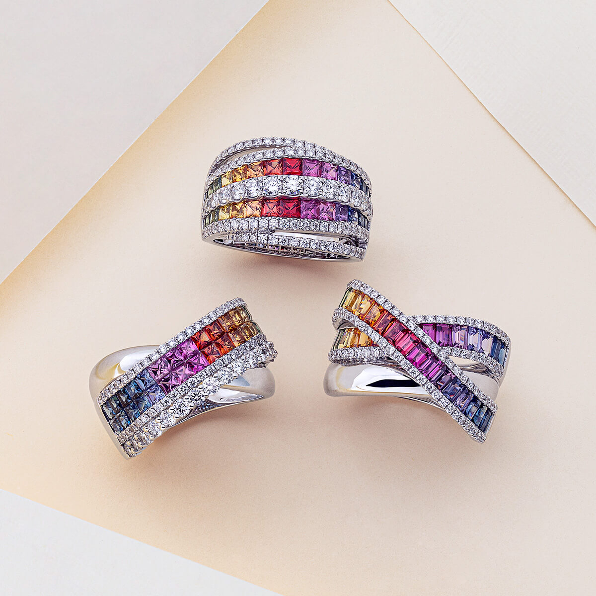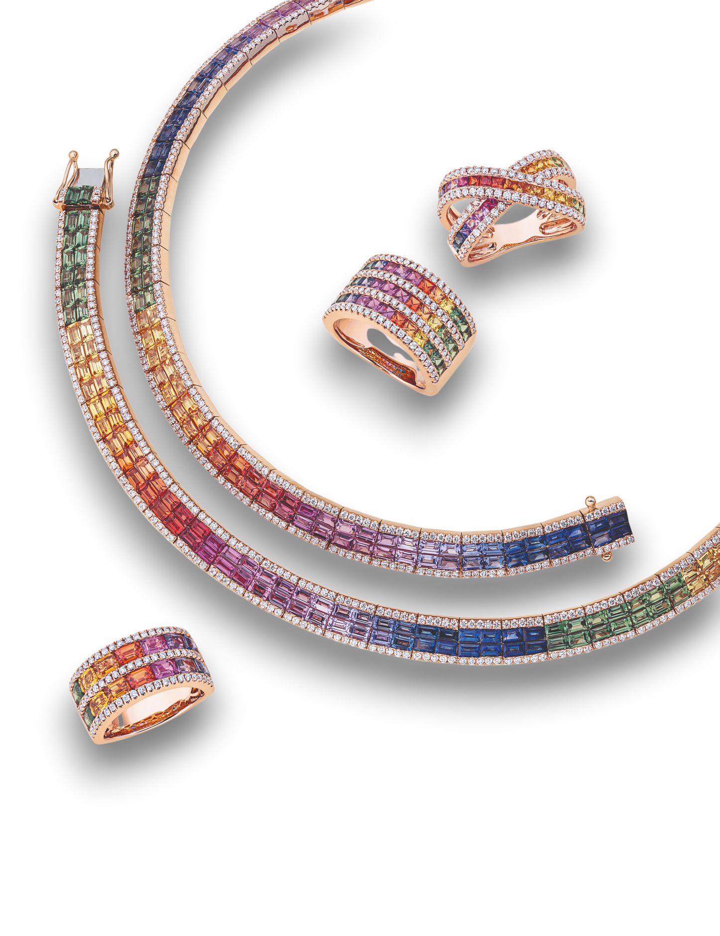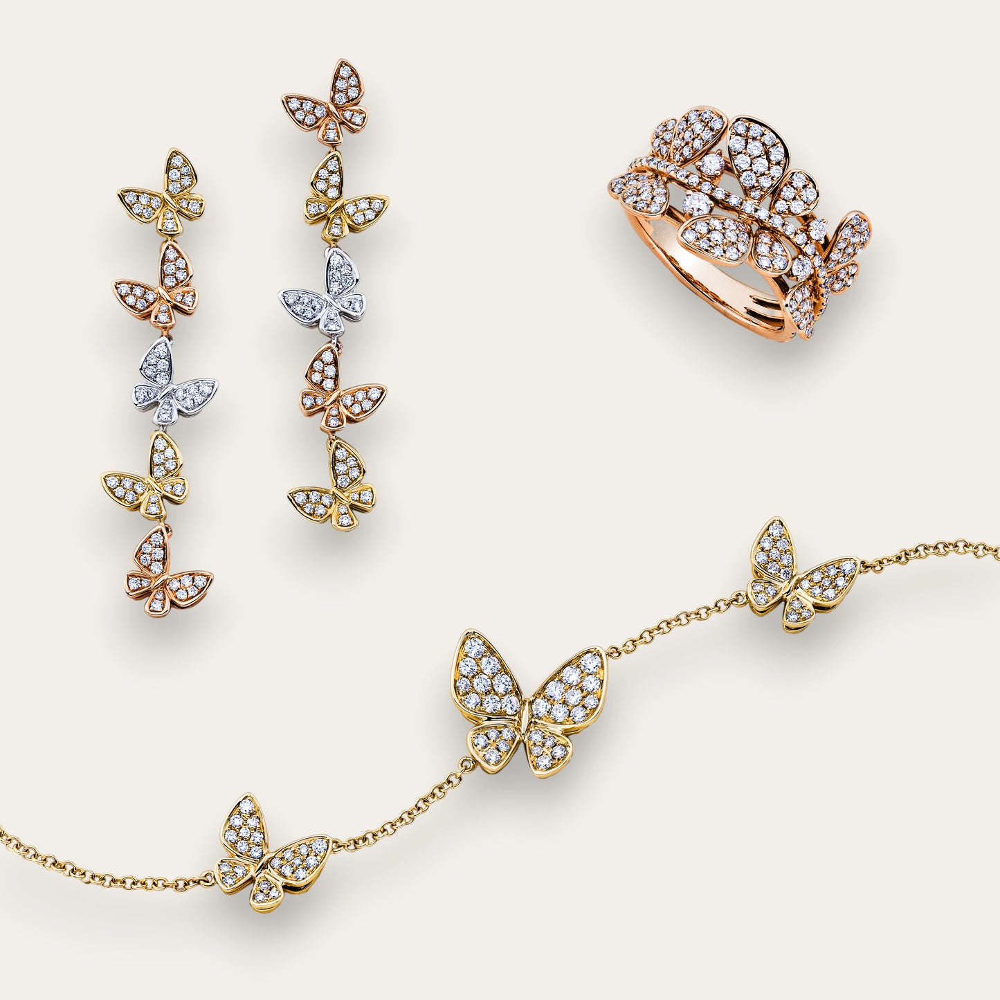 Discover vivid colored diamonds and gemstones set in fine gold, designed to bring a touch of playful luxury to your everyday look.